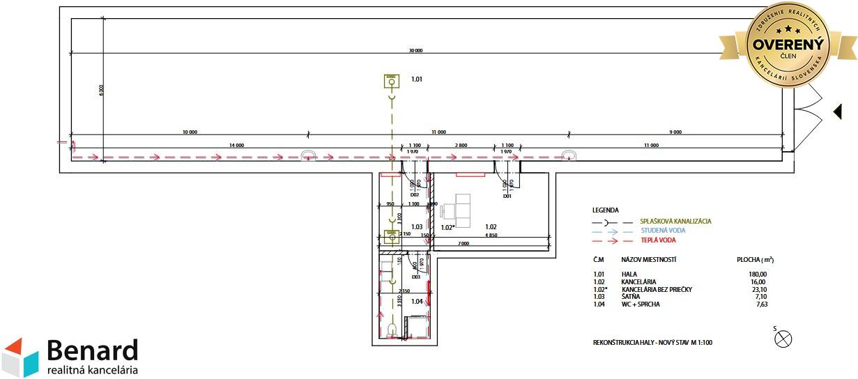 Plocha: 180 m² hala (30 m x 6 m)