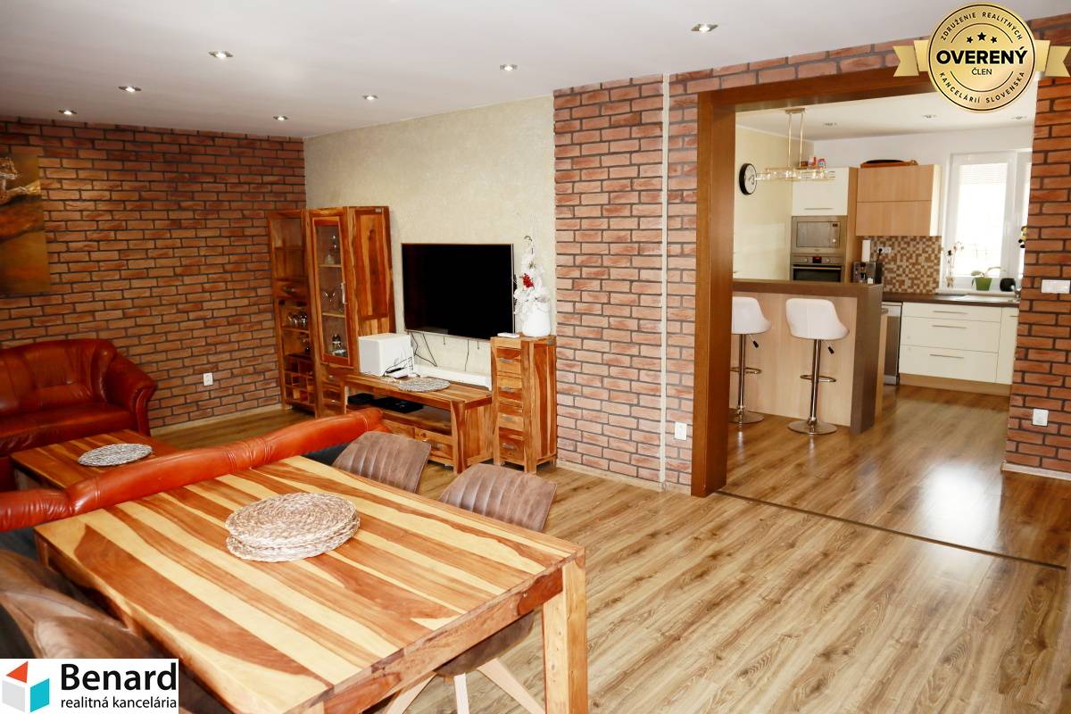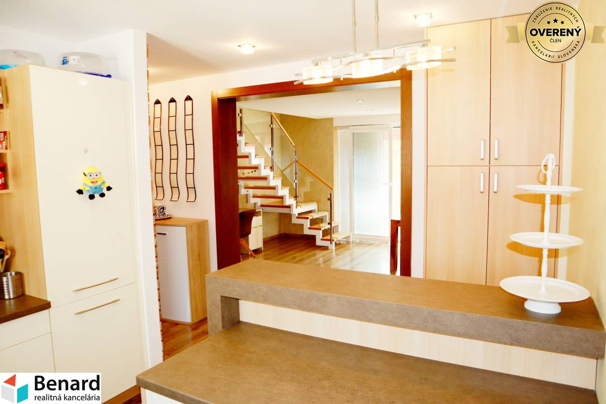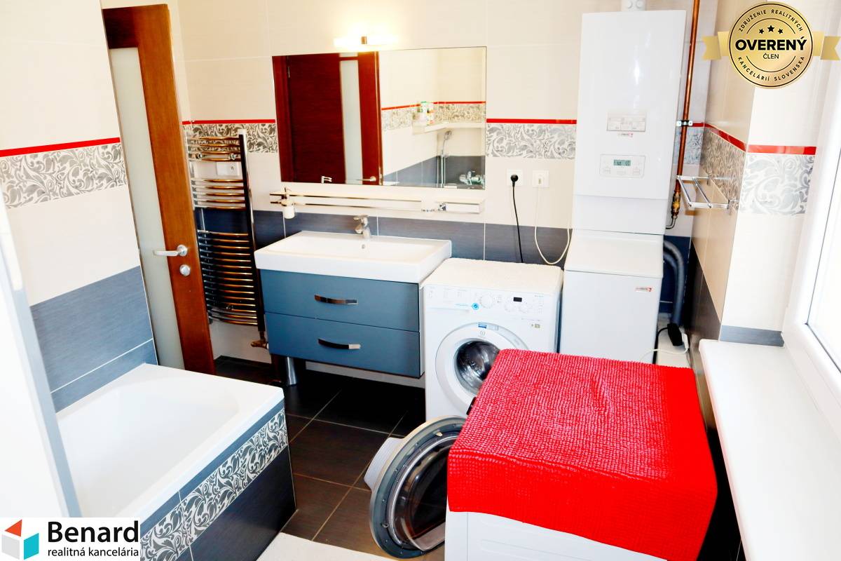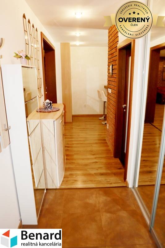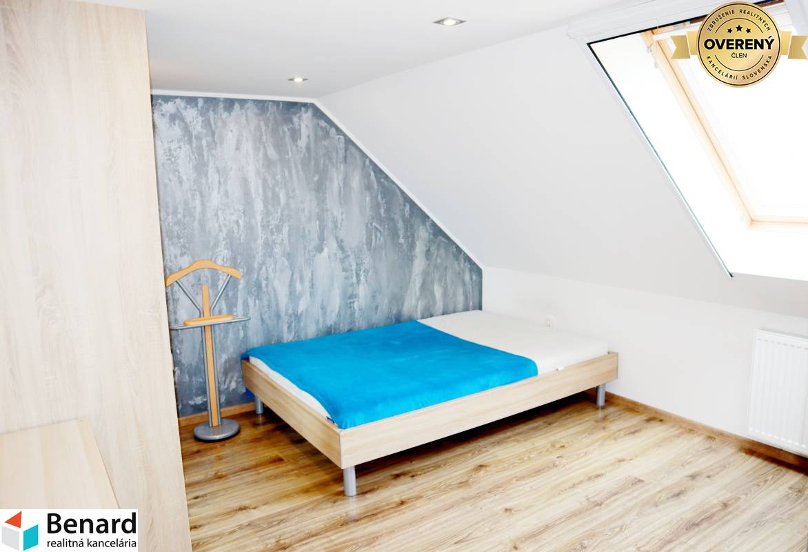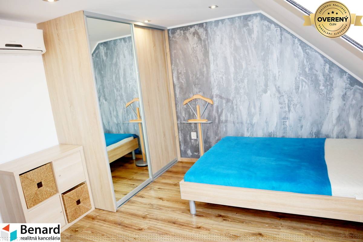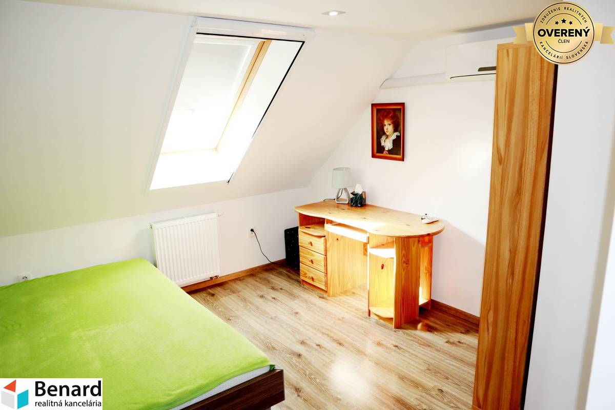 Na prenájom výnimočný, komplet zariadený 5 izbový mezonetový byt, ktorý sa nachádza v blízkosti centra, ulica Komenského, Prešov. Pozostáva : prvé poschodie: vstupná chodba, otvorená kuchyňa, obývacia miestnosť, spálňa, kúpeľňa, samostatné wc, balkón druhé poschodie: 3 x izba, kúpeľňa s wc, šatník, chodba - 130 m2+ 12,84 loggia, 2 poschodie - byt v osobnom vlastníctve - novostavba - plastové okná, strešné okná na poschodí, v obývacej miestnosti francúzske okno – odťahujúce, žalúzie, a interiérové rolety - keramická dlažba ( kúpeľne, časť chodba, wc, balkón), laminátová plávajúca kvalitná podlaha v izbách, kuchyňa, chodba - obklad ( kúpeľne, kuchyňa) - kuchynská linka, spolu so vstavanými spotrebičmi (umývačka riadu, plynový sporák, mikrovlnka, elektrická rúra, digestor, chladnička s mrazničkou) v kuchynskej linke nájdete základnú kuchynskú výbavu: taniere , hrnce, príbor, poháre, kávovar - vstupná chodba ( vstavaná skriňa) - obývacia izba (jedálenský stôl + stoličky, sedacia súprava, konferenčný stolík, komoda pod televízor, skrinky, televízor) - spálňa (manželská posteľ + matrace, vstavaná skriňa) - kúpeľňa na prízemí (vaňa, sprchovací nábytok, práčka, sušička, kúpeľňový nábytok) - izba na poschodí 1 ( písací stolík, skriňa, skrinky, komoda, veľké kreslo) - izba na poschodí 2 ( vstavaná skriňa, posteľ, písací stolík, stolička, knihovnička, komoda) - izba na poschodí 3 ( vstavaná skriňa, posteľ, písací stolík, knihovnička, komoda ) - kúpeľňa 2 ( kúpeľňový nábytok, sprchovací kút, wc) - samostatný šatník ( police) - balkón: 2x kreslo + stolík - v obývacej izbe a izbách v podkroví klimatizáca - vlastné kúrenie ( plynový kotol) - v cene je zahrnutý predplatený internet a TV programy - bez výťahu - k dispozícii je aj pivnica - parkovanie pri bytovom dome Cena nájmu je 1299,-€ vrátane energií+ v cene je zahrnutý predplatený internet a TV programy. Dvojmesačný depozit. Tento byt môžem len odporúčať !!! BYT SA PRENAJÍMA KOMPLET ZARIADENÝ, tak ako vidíte na fotkách! Výhoda bytu: veľmi dobrá lokalita, dostatok zelene, rýchlo sa dostanete do centra mesta aj peši, v tesnej blízkosti potraviny MILK-AGRO, blízkosti MŠ, ZŠ, športoviská... . Ak máte záujem o obhliadku, prípadne potrebujete viac informácii, nájdete nás v realitnom centre na Slovenskej ulici č. 8 v Prešove, alebo na benard@stonline.sk, tel.č: 0908 111 710