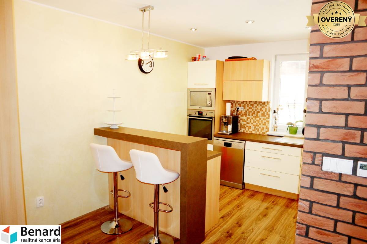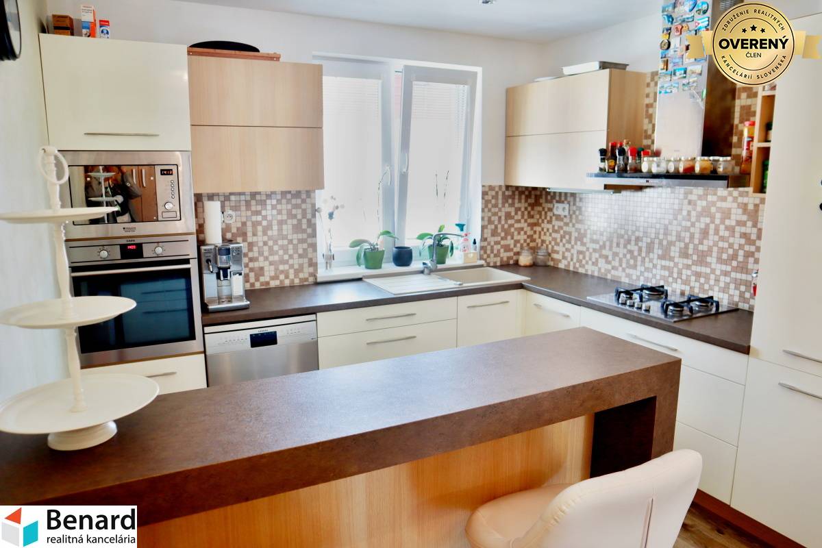 - kuchynská linka, spolu so vstavanými spotrebičmi (umývačka riadu, plynový sporák, mikrovlnka, elektrická rúra, digestor, chladnička s mrazničkou)