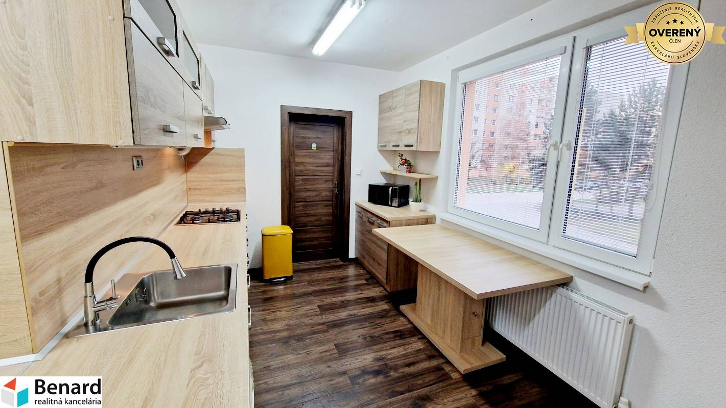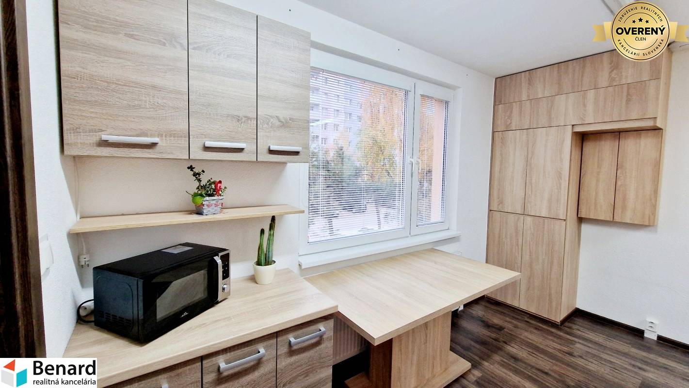 TOP CENA!. Na predaj pekný, rekonštruovaný 4 izbový byt s vlastným elektrickým kúrením a klimatizáciou, ulica Magurská, Sekčov, Prešov. Pozostáva : chodba, kuchyňa, izba, izba, obývacia izba, spálňa, kúpeľňa, wc, lodžia. - 77 m2 , 1/8 poschodie - lodžia - osobné vlastníctvo - byt prešiel rekonštrukciou v roku 2021 - kuchynská linka: plynový sporák, digestor, pripravený priestor na rúru, práčku a sušičku, potravinová skrinka, kuchynský rozťahovací stôl - vymenené zárubne a interiérové dvere - vchodové bezpečnostné dvere - vymenené radiátory v celom byte, jedna izba pôvodný rebrový radiátor - zateplená podlaha polystyrén, OSB doska, na nej plávajúca podlaha - keramická dlažba : lodžia - plávajúca podlaha : v celom byte - keramický obklad : kúpeľňa, wc - znížený strop: kúpeľňa - vymenené stúpačky - vymenená : elektrina aj 380, denný a nočný prúd - vlastné elektrické kúrenie a vlastný ohrev teplej vody 120 l zásobník vody - klimatizácia - kúpeľňa: kúpeľňový nábytok, vaňa - jadro: cembritová doska - plastové okná, žalúzie - vstavaná skriňa : chodba, spálňa - v celom byte lustre - pivnica malá, spoločná - pred bytom veľká vstupná chodba v nej veľký úložný priestor - nové vchodové dvere a zvončeky, dlažba, plastové okná, nová fasáda - výťah - parkovanie pred bytovým domom bezplatné Výhoda bytu: vynikajúca občianska vybavenosť, školy škôlka, ihriská, v blízkosti nákupné centrum NC MAX, zdravotné stredisko, kostol, MHD v blízkosti Ak máte záujem o obhliadku, prípadne potrebujete viac informácii, nájdete nás v realitnom centre na Slovenskej ulici č. 8 v Prešove, alebo na olejarova@benard.sk, tel.č: 0908 111 710 ZADARMO K TEJTO NEHNUTEĽNOSTI DOSTANETE: inzerovanie nehnuteľnosti na najsledovanejších realitných portáloch a v miestnych novinách; preverenie právneho stavu a tiarch danej nehnuteľnosti; vysvetlenie problémov záložných tiarch, vecných bremien a pod., právny servis zabezpečený právnikom s dlhoročnými skúsenosťami; kópiu LV prípadne katastrálnej mapy s kolkom na právne účely; poplatky za overenie podpisov na zmluvách u notára; správny poplatok za vklad vlastníckeho práva do katastra vo výške 100,-€ realitné, daňové a právne poradenstvo; zabezpečenie znalca na vypracovania znaleckého posudku; vypracovanie ponúk na zabezpečenie úveru u nášho hypotekárneho odborníka, ktorý spolupracuje s viacerými bankami