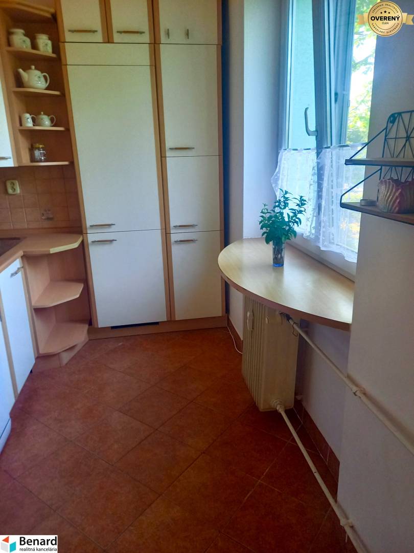 Ponúkame na predaj zrekonštruovaný 2 izbový TEHLOVÝ byt s balkónom v širšom centre mesta – ul. Pavlovičovo námestie Pozostáva z chodby, kuchyne prepojenej s obývačkou, spálne so vstupom na balkón, spoločnej kúpeľne a WC. - 52 m2 + balkón, 2/5 poschodie (výťah), orientácia východ – juh - západ - po rekonštrukcii - plastové okná v celom byte vrátane balkóna - parkety (izby), keramická dlažba (kuchyňa, chodba, kúpeľňa, WC) - jadro murované - zrekonštruovaná kúpeľňa (rohová vaňa, sanita, dlažba) - vstavaná skriňa v spálni - znížený strop v spálni - 2 murované pivnice Bytový dom je zateplený, vymenené sú vchodové dvere, okná v spoločných priestoroch, nová strecha, domový vrátnik. Nachádza sa v širšom centre mesta, s tým súvisí všetka potrebná občianska vybavenosť - zastávka MHD, obchody, banky, divadlo...do centra mesta cca 10 minút. Ak máte záujem o obhliadku prípadne potrebujete viac informácii nájdete nás v realitnom centre na Slovenskej ul. č. 8 v Prešove, prípadne na kocisova@benard.sk alebo na telefónnom čísle 0910 900 920 ZADARMO K TEJTO NEHNUTEĽNOSTI DOSTANETE: ¬ inzerovanie nehnuteľnosti na najsledovanejších realitných portáloch a v miestnych novinách; ¬ preverenie právneho stavu a tiarch danej nehnuteľnosti; ¬ vysvetlenie problémov záložných tiarch, vecných bremien a pod.; ¬ právny servis zabezpečený právnikom s dlhoročnými skúsenosťami; ¬ kópiu LV prípadne katastrálnej mapy s kolkom na právne účely; ¬ poplatky za overenie podpisov na zmluvách u notára; ¬ správny poplatok za vklad vlastníckeho práva do katastra vo výške 100,-€ ¬ realitné, daňové a právne poradenstvo; ¬ zabezpečenie znalca na vypracovania znaleckého posudku; ¬ vypracovanie ponúk na zabezpečenie úveru u nášho hypotekárneho odborníka, ktorý spolupracuje s viacerými bankami