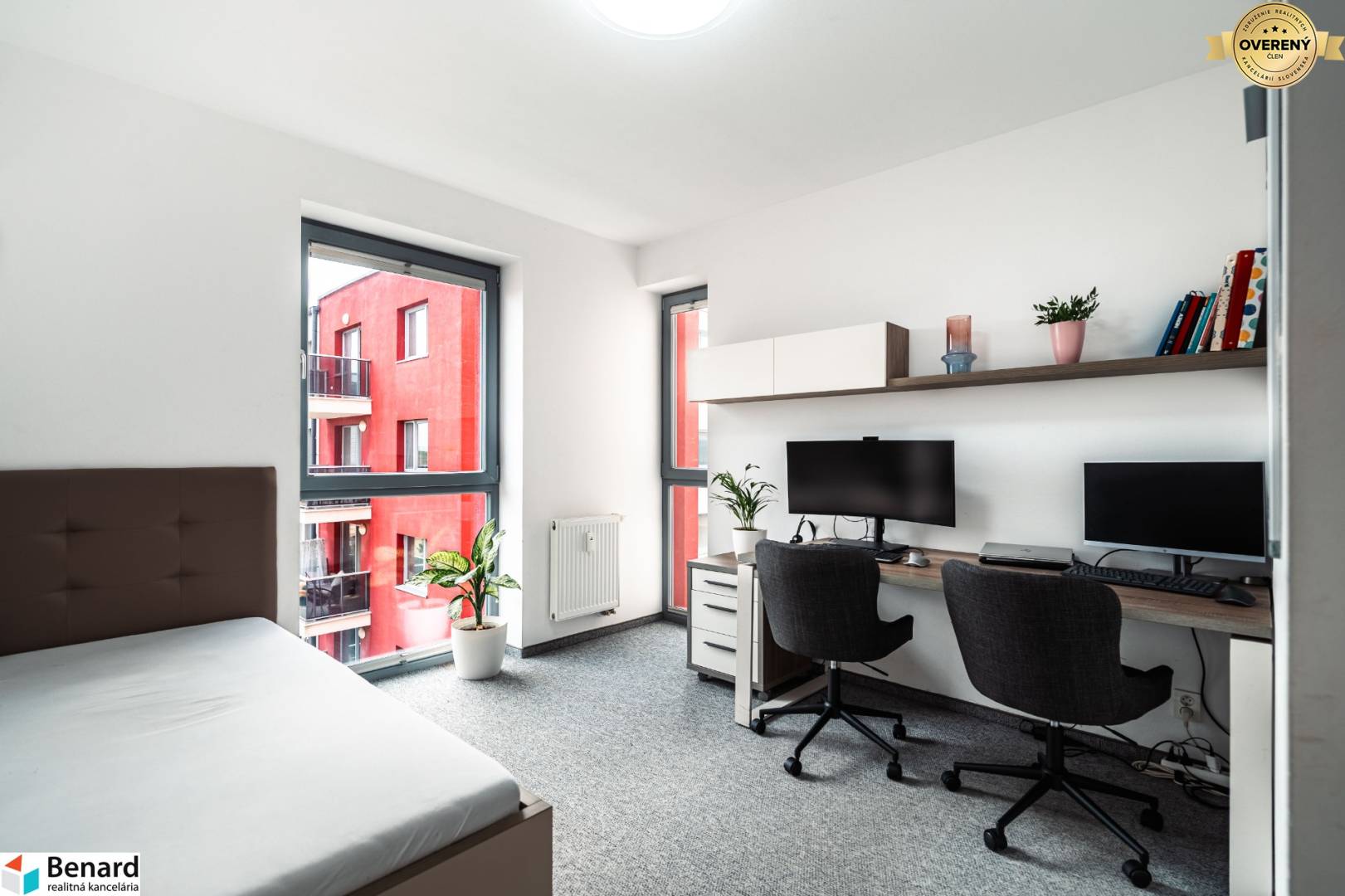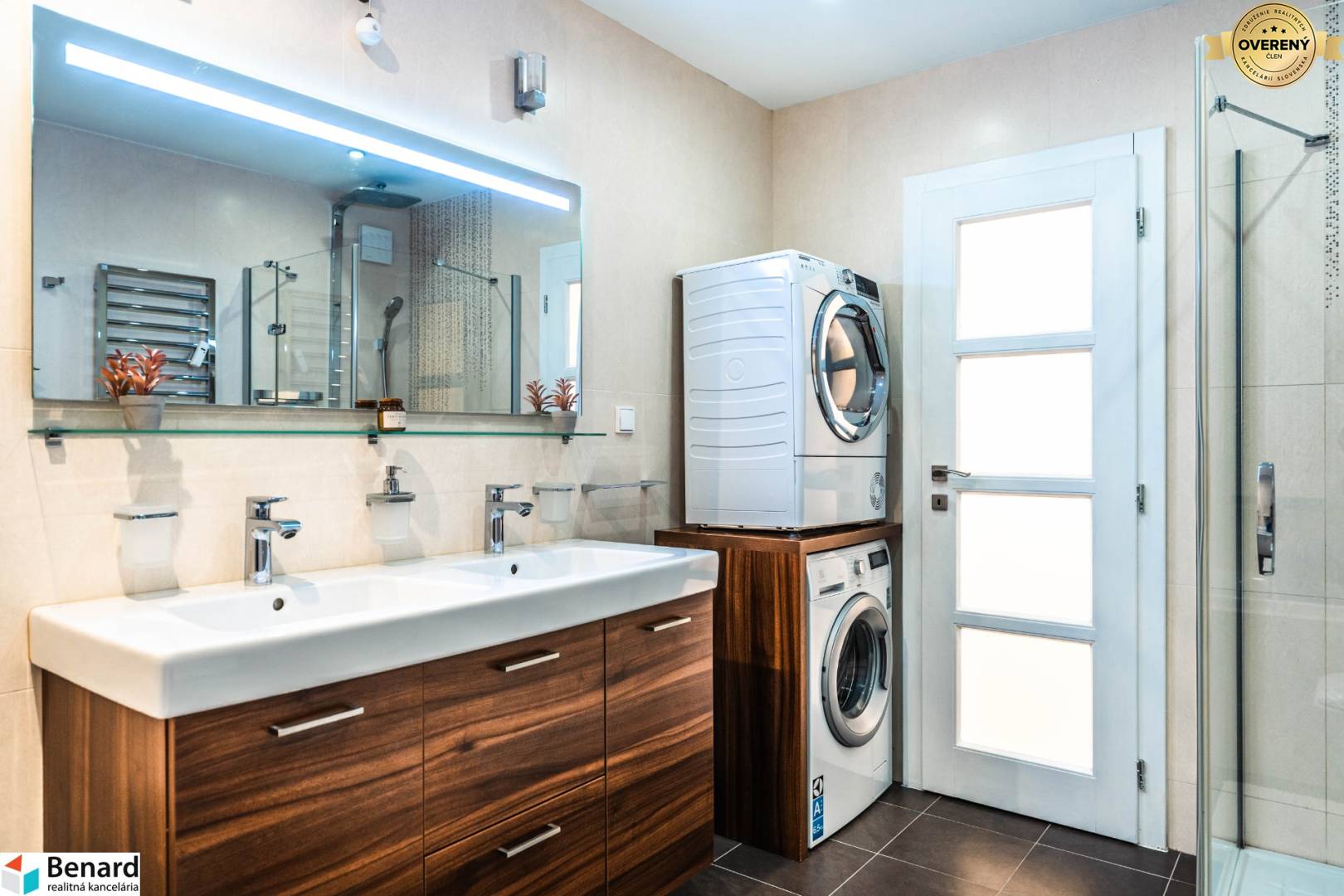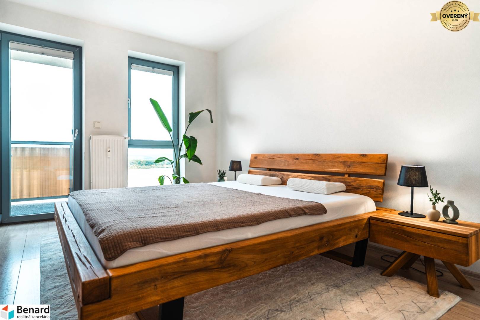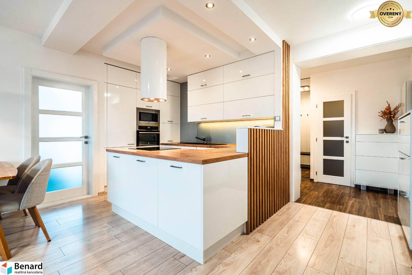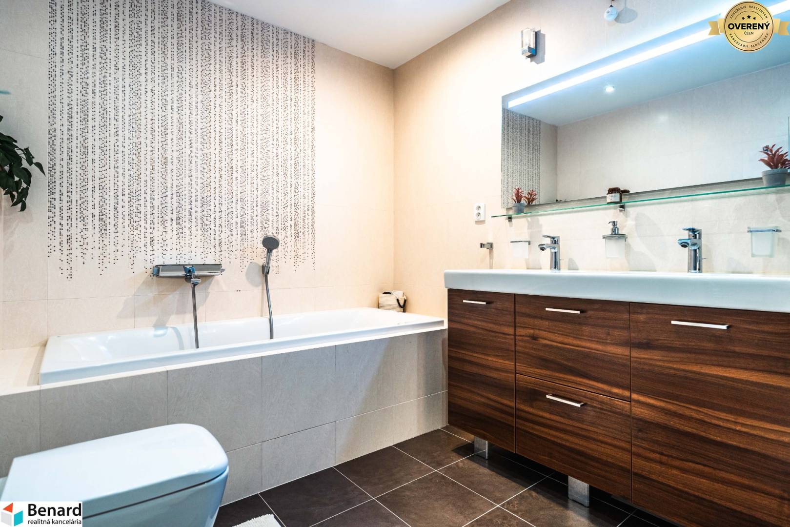 Hľadáte priestranný a moderný byt už v skolaudovanej novostavbe, ktorý je zariadený? Máme pre Vás na predaj 4-izbový byt s kumbálom, ktorý je oproti bytu, priamo na poschodí. Nehnuteľnosť sa nachádza na Jelšovej ulici, v obľúbenom projekte Panoráma. Ak si potrpíte na prostredie, v ktorom žijete a túžite po čerstvom vzduchu, či výhľade na lúky a lesy, tak Panoráma je pre vás ideálnou voľbou. Okolitá príroda a les ponúkajú pestré možnosti oddychu a rekreácie. Nájdete tu materskú školu, ohradený areál, kde sú detské ihriská, krásne a záhradníkom udržiavané pozemky, aj zastávku MHD. Rodičia určite ocenia, že za bytovými domami sa nachádza 250 metrov dlhý a oplotený dvor, kde sa môžu ich deti bezpečne hrať. Jednoducho všetko, čo potrebujete pre pohodlný, každodenný život. Táto lokalita je ideálnym miestom pre rodiny a pre komunitný život. Bytový dom je postavený z tehly a je zateplený prírodným materiálom, s 15-centimetrovou minerálnou vlnou. V bytovke sú štyri poschodia a predávaná nehnuteľnosť sa nachádza na 3. p. Byt je priestranný a má skvelé rozloženie. Spálňa, detská izba a pracovňa majú samostatné vstupy, sú nepriechodné. Kupujúci určite ocenia, že v byte sú dve toalety a dva samostatné balkóny, na ktoré sa dostanete z obývačky a zo spálne. Môžete si tak vychutnávať výhľady na okolitú prírodu. V dennej časti sa nachádza spojená obývačka s kuchyňou, kde je klimatizácia. V byte sú kvalitné okná s trojsklom. V bytovke sa nachádza plynová kotolňa, ktorá slúži na vykurovanie a ohrev úžitkovej vody, preto sú tu nízke mesačné náklady. Výhodou bytu je praktický kumbál, umiestnený oproti bytu, ktorý je zahrnutý v cene nehnuteľnosti. K bytu je možnosť dokúpiť parkovacie miesto priamo pri bytovom dome, ako aj pivnicu na prízemí bytového domu. Zakúpenie parkovacieho miesta ani pivnice nie je podmienkou kúpy. Cena parkovacieho miesta je 12 000 € a cena pivnice je 12 000 €. Výhody Vášho budúceho domova sú: - nízke mesačné náklady, - byt je priestranný, - byt má dva balkóny s krásnym výhľadom, - k dispozícii je kumbál, ktorý sa nachádza oproti bytu, - tiché bývanie s množstvom zelene, - možnosť zakúpiť si parkovacie miesto, ktoré je hneď pri bytovom dome, - možnosť zakúpiť si pivnicu, ktorá je na prízemí bytového domu, - celková plocha bytu je 102 m2 a plocha obytných miestností je 92,43 m2. Príďte sa o týchto, a aj iných výhodách presvedčiť sami a rezervujte si obhliadku na čísle 0903 367 922.