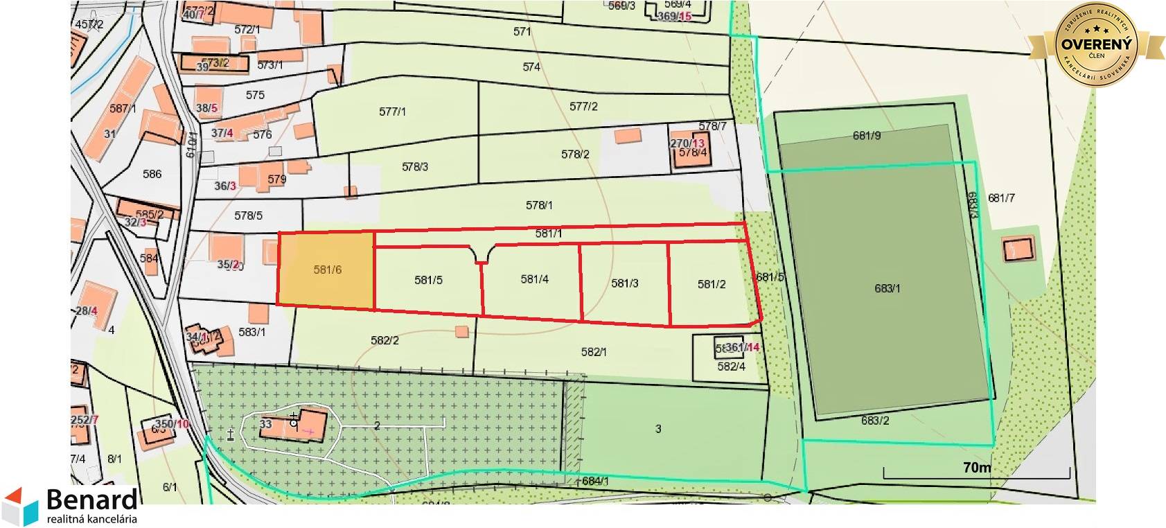V obci JAKUBOVANY okr. Sabinov na predaj 4 parcely o rozlohe 1000 m2, ktoré sú vhodné ako investičná príležitosť, alebo ako stavebný pozemok. Obec je vzdialená 18 km od Prešova cca 20 minút autom. Obec je bez osád. Nová štvrť v obci. - Pri kúpe každej parcely je automatický prirátaný aj podiel zo súkromnej príjazdovej cesty - Elektrina vedie pri pozemku číslo 2, ostatné parcely sa môžu pripojiť po žiadosti na VSE - Obec má pripravenú projektovú dokumentáciu na realizáciu novej vetvy - voda/kanál, ktorá bude realizovaná pod príjazdovou komunikáciou - Susedné domy na ulici si aktuálne riešili vodu vlastnou studňou a odpad septikom, alebo čističkou na svojom pozemku - Pozemky sú v osobnom vlastníctve PARCELA 1: súkromná príjazdová cesta, š: 6m, d: 139m, 880 m2 PARCELA 2: 1022 m2, 34 x 31 x 30 x 32, 55.000 EUR PARCELA 3: 1025 m2, 34 x 32 x 33 x 29, 48.000 EUR PARCELA 4: 1022 m2, 37 x 29 x 30 x 20, 48.000 EUR, REZERVOVANÁ PARCELA 5: 1005 m2, 41 x 20 x 35 x 23, 48.000 EUR PARCELA 6: 1008 m2, 36 x 29 x 36 x 27, 48.000 EUR OBEC JAKUBOVANY: - V obci nie sú osady - Pekná a pokojná lokalita - Materská škôlka, ZDŠ prvý stupeň ( 1 – 4 ) - SAD doprava NÁZOR MAKLÉRA: Pozemky sú v novej štvrti v obci Jakubovany, je to tichá oblasť s peknými výhľadmi na okolie a rozloha pozemkov je ideálna na výstavbu rodinných domov. Ak máte záujem o obhliadku, prípadne potrebujete viac informácii, kontaktujte nás na: kmecova@benard.sk, tel.č. 0948 140 849, alebo v realitnom centre na Slovenskej 8 v Prešove. ZADARMO K TEJTO NEHNUTEĽNOSTI DOSTANETE: Ø preverenie právneho stavu a tiarch danej nehnuteľnosti Ø vysvetlenie problémov záložných tiarch, vecných bremien a pod Ø právny servis zabezpečený právnikom s dlhoročnými skúsenosťami Ø kópiu LV prípadne katastrálnej mapy s kolkom na právne účely Ø poplatky za overenie podpisov na zmluvách u notára Ø správny poplatok za vklad vlastníckeho práva do katastra vo výške 100,-€ Ø realitné, daňové a právne poradenstvo Ø zabezpečenie znalca na vypracovanie znaleckého posudku Ø vypracovanie ponúk na zabezpečenie hypotéky u nášho odborníka, ktorý spolupracuje so všetkými bankami