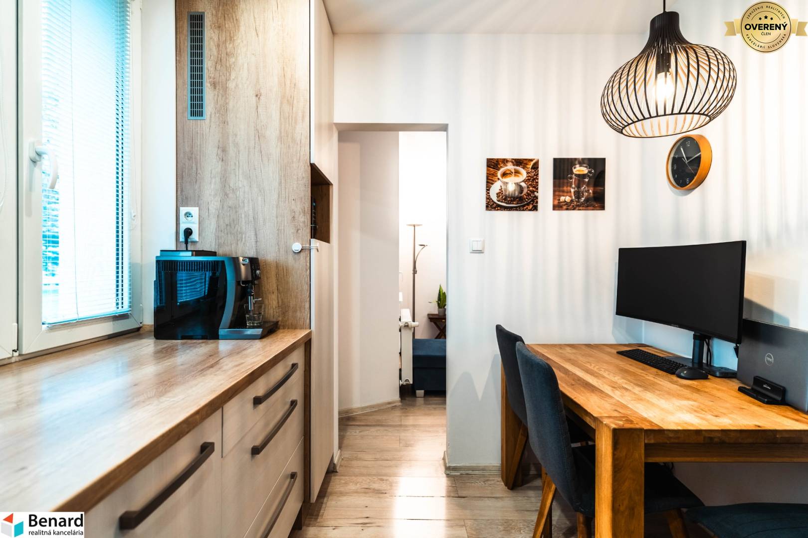 Exkluzívne ponúkame na predaj útulný 2-izbový byt v Košiciach, ktorý sa nachádza na najobľúbenejšom sídlisku Terasa, na Pražskej ulici č. 1. Mestská časť Košice – Terasa patrí medzi najvyhľadávanejšie lokality vďaka svojej výbornej polohe a rýchlej dostupnosti do centra mesta. Byt je ideálnou voľbou nielen na vlastné bývanie, ale aj ako investícia, keďže prenájom bytov v tejto oblasti je mimoriadne žiadaný. Navyše, ceny nehnuteľností v tejto oblasti dlhodobo rastú. V bezprostrednom okolí bytovky nájdete obchodné centrum Galéria, poštu, školy a škôlky, zastávky MHD, detské ihriská, centrum voľného času, reštaurácie, obchody a množstvo ďalšej občianskej vybavenosti, ktorá vám spríjemní každodenný život. Byt sa nachádza na prízemí bytového domu, disponuje vnútornou loggiou a pred piatimi rokmi prešiel kompletnou rekonštrukciou. Je kompletne zariadený, takže nový majiteľ ho môže po kúpe ihneď užívať bez nutnosti ďalšieho zariaďovania. Praktické vstavané skrine v byte poskytujú dostatok úložného priestoru. Spálňa má samostatný vchod, čo zaručuje súkromie a kúpeľňa je oddelená od toalety. K bytu patrí aj murovaná pivnica. Celková výmera nehnuteľnosti je 51,57 m². Medzi hlavné výhody tejto nehnuteľnosti patria: - skvelá poloha priamo pri OC Galéria, - kompletná rekonštrukcia, - byt má veľa úložného priestoru, - príjemní susedia a slušný vchod, - vhodnosť na investíciu s možnosťou budúceho prenájmu a iné. Navyše, pred kúpou vám vieme poskytnúť odborné poradenstvo ohľadom najvhodnejšieho hypotekárneho úveru presne podľa vašich potrieb. Cena nehnuteľnosti je dostupná na vyžiadanie v realitnej kancelárii. Viac informácií vám radi poskytneme pri osobnej obhliadke alebo prostredníctvom telefonickej či e-mailovej komunikácie.