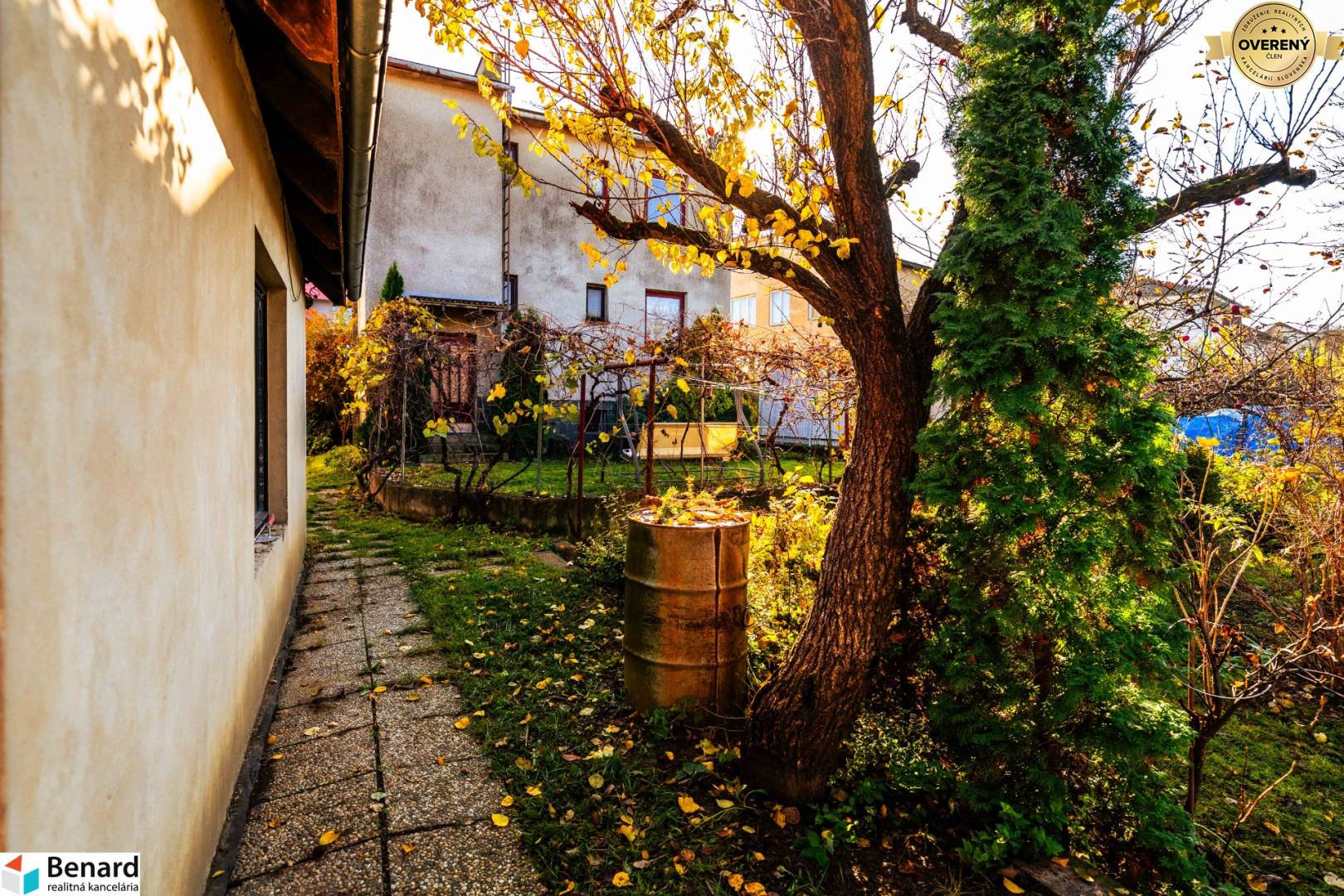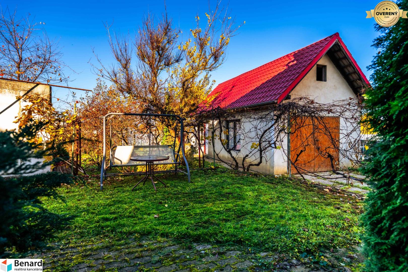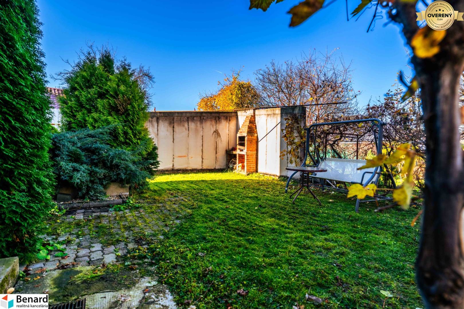 Pozemok má rozlohu 730 m² a nachádza sa na ňom aj samostatná garáž. Záhrada je bohatá na ovocné stromy – rastú tu kivi, hruška, jabloň, broskyňa, banánovník, muchovník, višňa, hrozno, slivka a ďalšie. Za domom je útulné posedenie s vonkajším krbom, ideálne na relax či rodinné oslavy a pred domom je pekná predzáhradka.