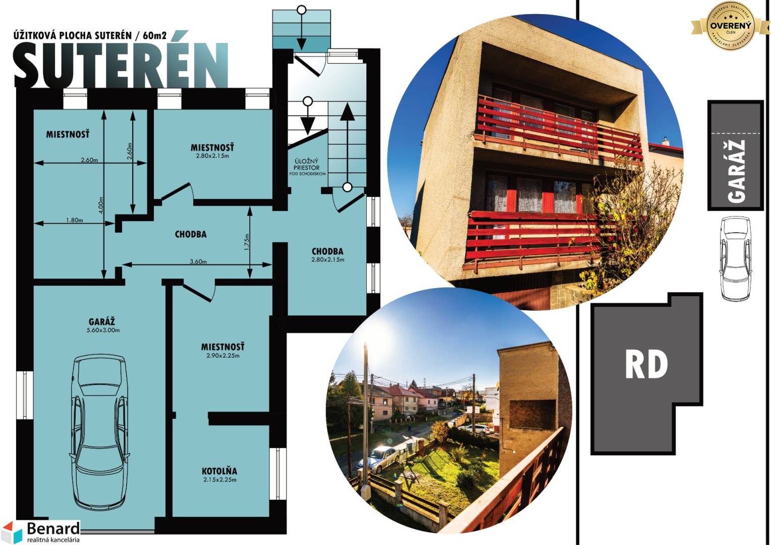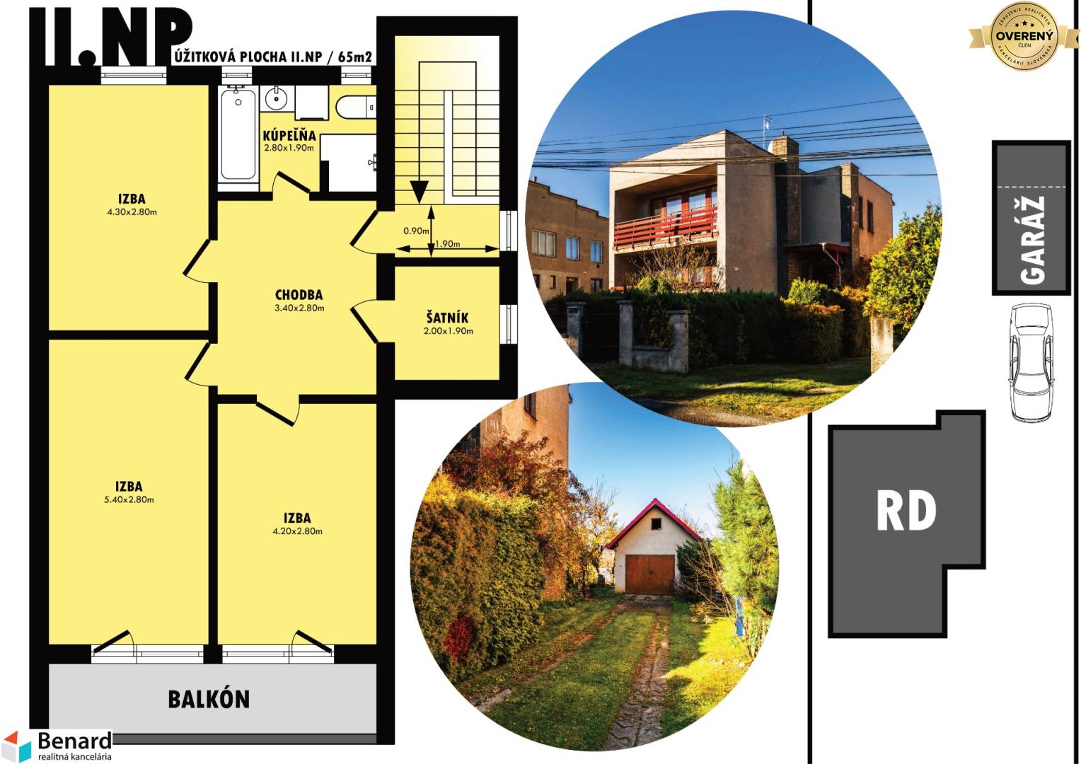 Rodinný dom sa nachádza mimo hlavného ťahu, v tichej lokalite a poskytuje komfortné bývanie pre celú rodinu. Na prvom poschodí sa nachádza chodba, priestranná obývačka spojená s jedálňou a kuchyňou, komora a toaleta. Druhé poschodie ponúka spálňu, detskú izbu, pracovňu, kúpeľňu s toaletou a miestnosť vhodnú napríklad na šatník. V suteréne je garáž, technická miestnosť a ďalšie priestory, ktoré je možné využiť ako sklad alebo dielňu. Dom je v pôvodnom, ale veľmi zachovalom stave s možnosťou sa ihneď nasťahovať.