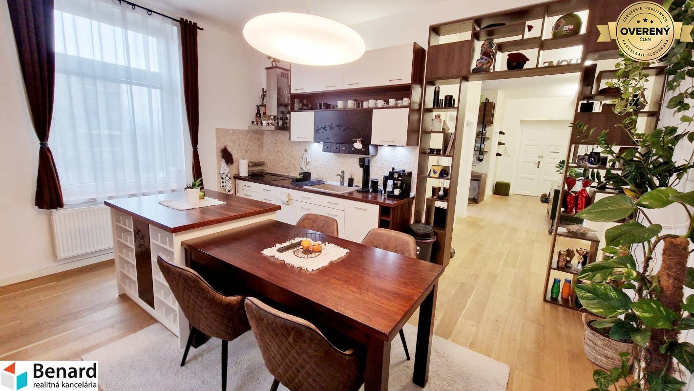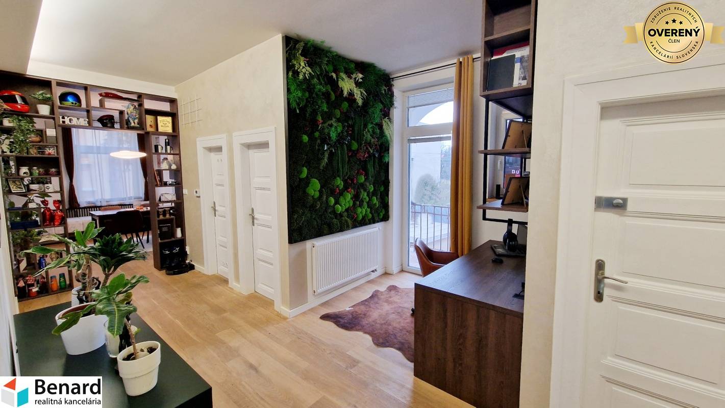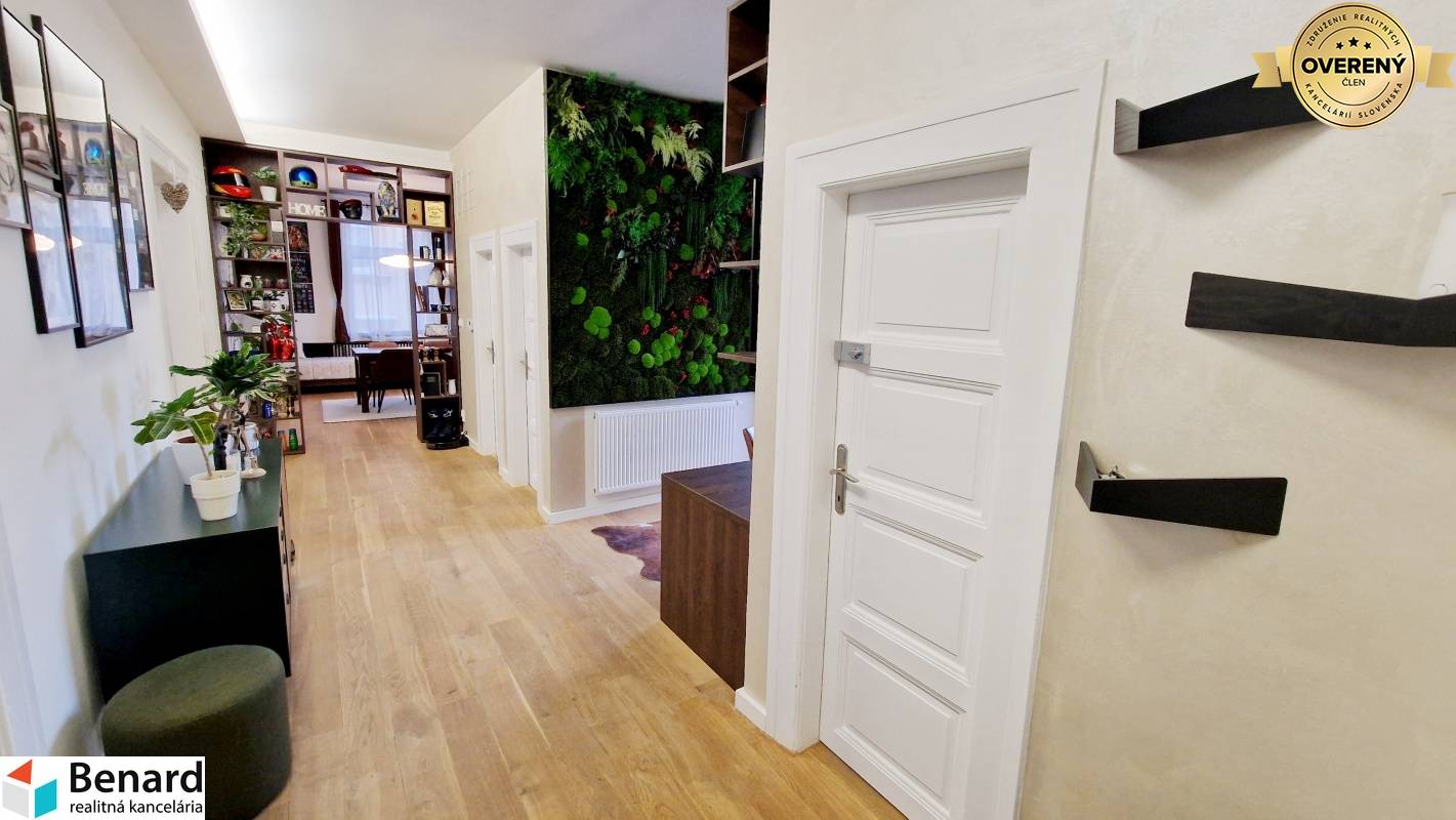 Pozostáva: chodba kuchyňa, spĺňa, obývacia miestnosť, posilňovňa, miestnosť na šatník, balkón, kúpeľne, WC. - 115 m2 , 1/1 - byt v osobnom vlastníctve - štýlovo zariadený byt - prešiel kompletnou rekonštrukciou s nábytkom vyrobeným na mieru - v izbách drevené podlahy - keramická dlažba: wc, kúpeľňa - keramický obklad: kúpeľňa, wc - kuchynská linka: vstavané spotrebiče (sporák , digestor, chladnička, mraznička, elektrický sporák) - kúpeľňa sprchovací kút, skrinka, zrkadlo - plastové okná, žalúzie - teplý byt - vlastný kotol v byte - kozub ( vytvára príjemnú atmosféru bývania) - balkón Zariadenie bytu : TAK AKO VIDÍTE NA FOTKÁCH komplet zariadený! Elektrospotrebiče: práčka, vstavené spotrebiče v kuch. linke: chladnička s mrazničkou, mikrovlnka, rúra, elektrický sporák, digestor, televízor v obývacej izbe a kuchyni, automatická práčka, robotický vysávač, kávovar Zariadenie v posilňovni. Výhodou bytu - nachádza blízko centra, výborná lokalita. Dostatok zelene navôkol. Cena nájmu 2000€ vrátane energií, internet. Byt je voľný do 01.04.2026. Určený pre: max dve osoby, bez zvierat PLATBY: jeden depozit 2000€. Ak máte záujem o obhliadku, prípadne potrebujete viac informácii, nájdete nás v realitnom centre na Slovenskej ulici č. 8 v Prešove, alebo na benard@stonline.sk, tel.č: 0908 111 710.