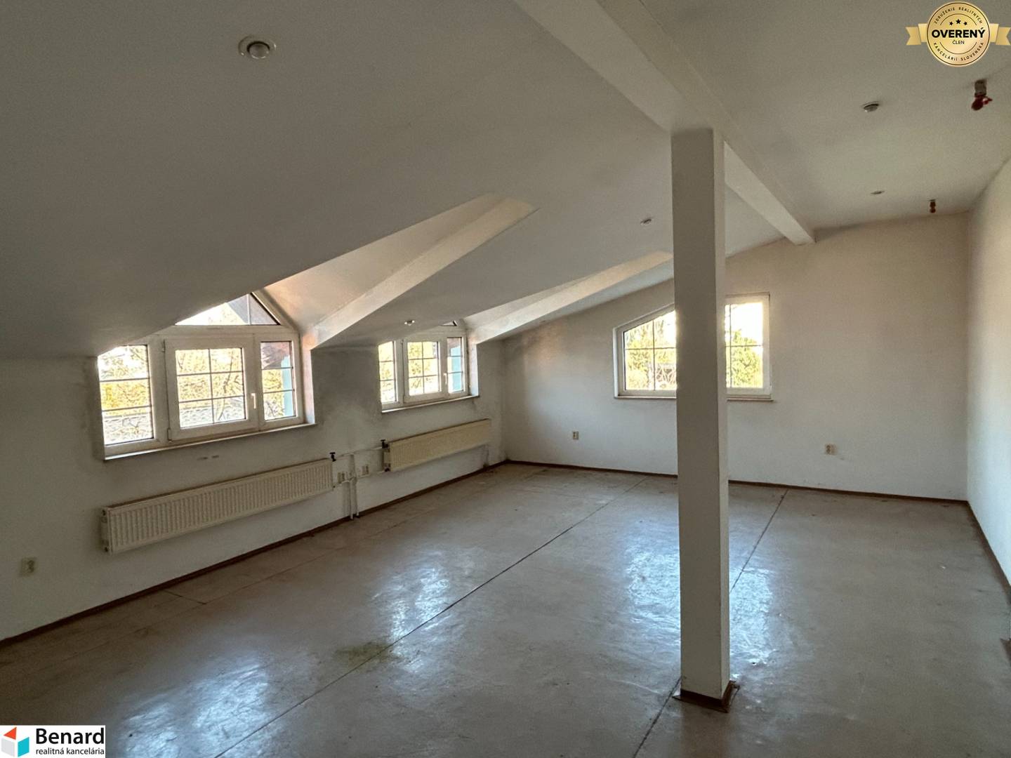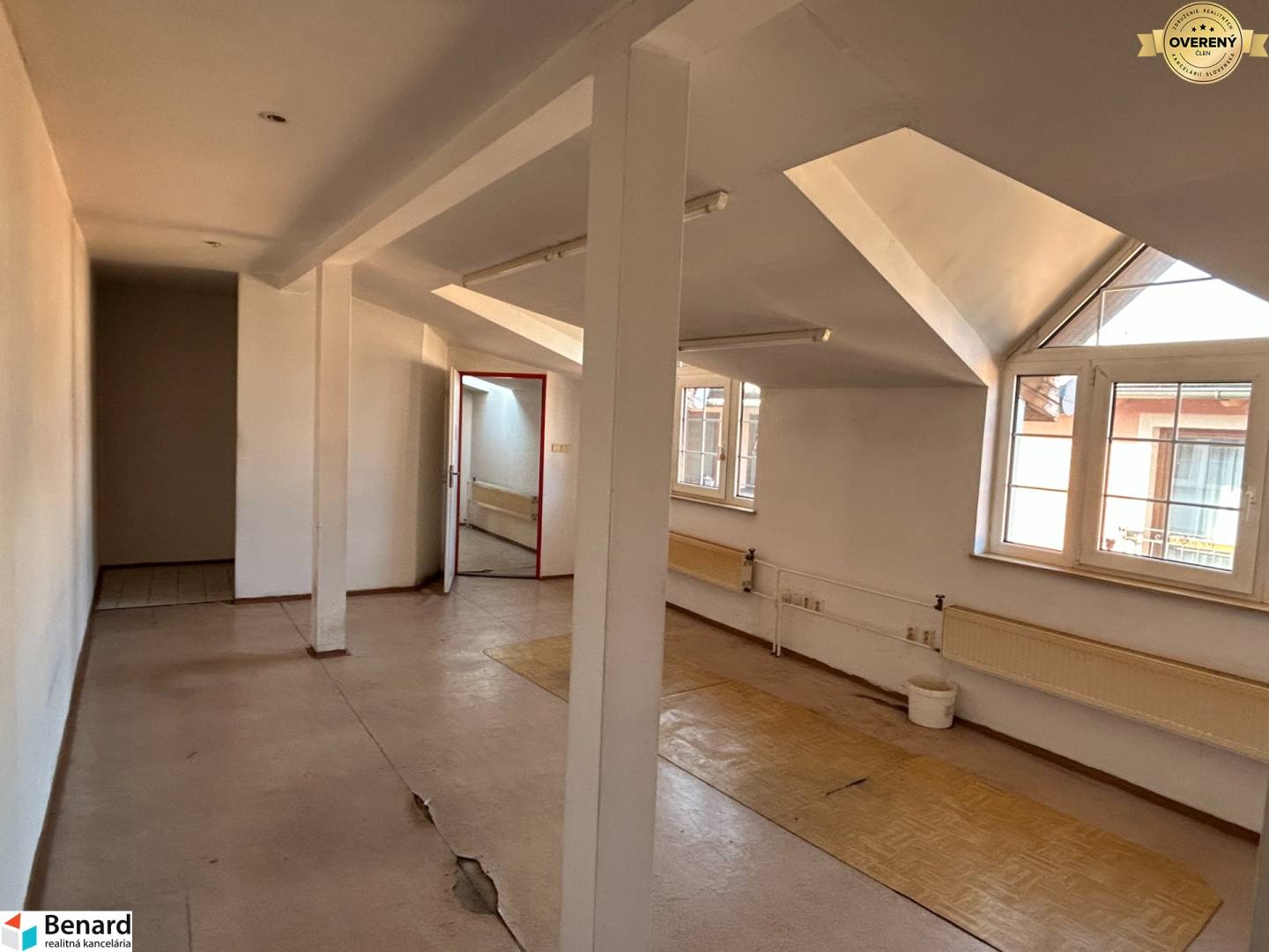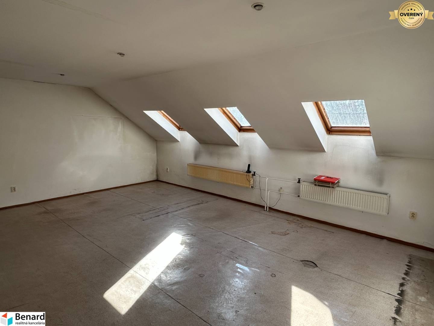 poschodie: pozostáva z chodby, 3 miestností, kuchynského kúta, soc. zariadenia. Tento priestor je určený na bývanie, príp. kancelárie ( možnosť urobiť napr. 2 byty)