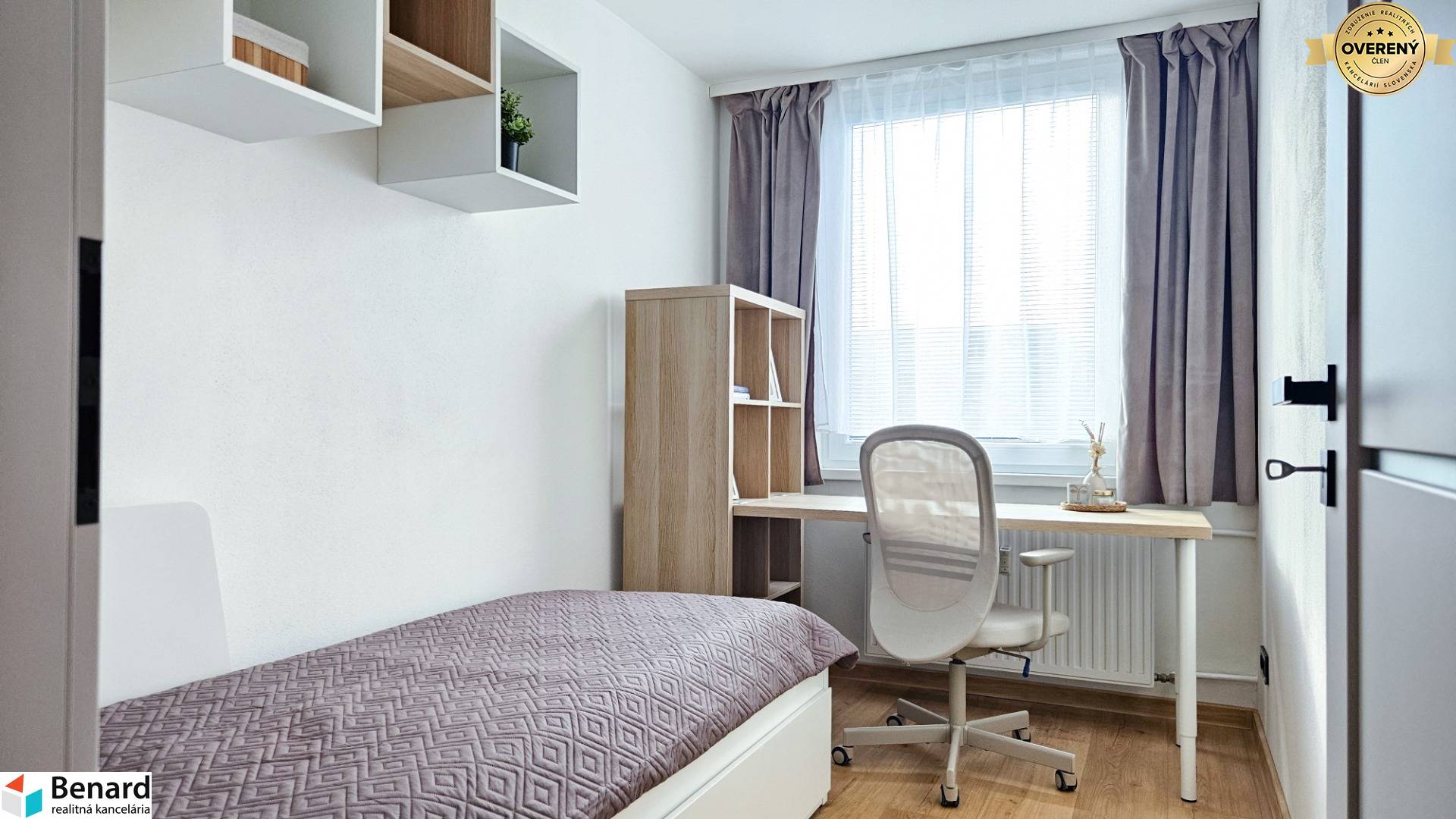 - štedré úložné priestory v podobe vstavaných skríň na chodbe aj v izbe, ako bonus k bytu prislúcha aj komora na chodbe,