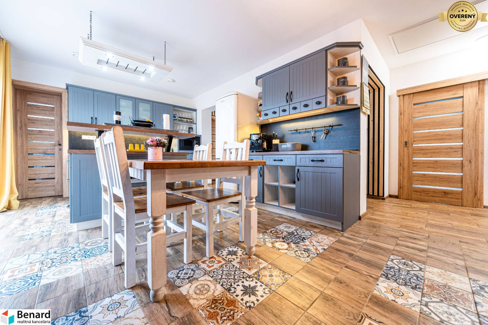 PREDANÉ: Exkluzívne ponúkame na predaj nádherný 5- izbový rodinný dom v obci Čaňa. Obec Čaňa je vyhľadávanou lokalitou pre svoju rýchlu dostupnosť do Košíc. Rodinný dom je vzdialený od centra mesta iba 15 km. Obec ponúka kompletnú občiansku vybavenosť: poštu, obchody, materskú a základnú školu, zdravotnícke strediská, lekáreň, wellness centrum a mnohé iné. Pre tenisových nadšencov sú k dispozícií tenisové kurty a pre milovníkov korčuľovania a hokeja je dostupný zimný štadión. V obecnej športovej hale si môžete zahrať futbal, volejbal, basketbal, hádzanú alebo florbal. Svoje voľné chvíle môžete tráviť príjemnými prechádzkami popri jazere a vychutnávať si tak množstvo zelene. Rodinný dom sa nachádza na konci tichej ulice, vďaka čomu si budete môcť vychutnávať Váš obľúbený nápoj v pokoji, na Vašej krytej terase. Pozemok je rovinatý, slnečný a má ideálnu rozlohu 757 m2. Pozemok je oplotený a má elektrickú vstupnú bránu. Nehnuteľnosť je vhodná pre klienta, ktorý hľadá vkusný, moderný a priestranný dom s množstvom prirodzeného svetla, ktoré preniká cez veľké presklené okná. Veľkým benefitom domu je vetranie prostredníctvom rekuperácie vzduchu. Rekuperačnú jednotku a zásobník vody sú umiestnené v technickej miestnosti, ktorá sa využíva aj ako práčovňa. Dom je napojený na kanalizáciu a na obecnú vodu, ktorá sa využíva v kuchyni. Skvelou správou je, že na pozemku sa nachádza studňa. Prefiltrovaná voda zo studne sa využíva v celej domácnosti, vďaka čomu sú náklady na vodu nízke. Pri vstupe do dennej časti domu Vás očarí moderná obývačka prepojená s kuchyňou, kde romantickú atmosféru vytvára krb nachádzajúci sa v kuchynskej časti. Vedľa priestrannej a plne vybavenej kuchyne sa nachádza veľká, potravinová komora. Určite oceníte, že spálňa má samostatný šatník a vlastnú kúpeľňu, vďaka čomu budete mať dostatok súkromia. Dom má tieto miestnosti: zádverie, chodba, komora, kuchyňa s jedálňou, ktorá je čiastočne prepojená s obývacou izbou, kúpeľňa s toaletou, pracovňa/hosťovská izba, dve detské izby, spálňa, ďalšia samostatná kúpeľňa, samostatná toaleta, technická miestnosť, šatník, terasa, garáž. V dome máte možnosť využiť aj podkrovie. Budúci majiteľ domu určite ocení vysoký komfort pri parkovaní, nakoľko je k dispozícií vykurovaná garáž, ktorá je súčasťou domu. Vaše auto a Vy tak budete chránený pred akýmkoľvek počasím. Garáž je navyše vybavená elektrickou bránou s automatickým ovládaním, čo spríjemňuje jej využívanie. [b]Za výhody tohto domu považujeme: [/b] - vyhľadávaná a žiadaná lokalita, - dom sa nachádza len 15 km od centra mesta, - rok kolaudácie 2018, - presvetlené a priestranné izby, - veľká úžitková výmera domu, - veľký pozemok s vlastnou terasou, - dom má garáž, - v dome je rekuperácia vzduchu, - napojenie na obecnú vodu, - studňa na pozemku, - napojenie na kanalizáciu, - v dome je krásny krb, - pred kúpou tejto nehnuteľnosti získate od nás informácie o najvhodnejšom hypotekárnom úvere priamo pre Vás. V prípade, že Vás ponuka zaujala, kontaktujte nás na číslo 0903 367 922 a dohodnite si s nami obhliadku. Tešíme sa na stretnutie.