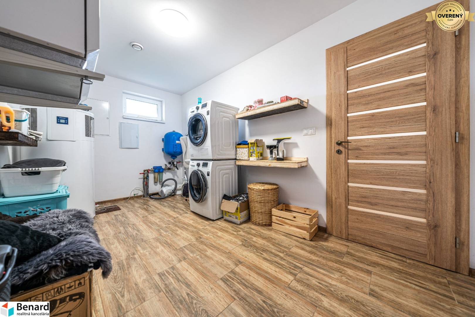 Veľkým benefitom domu je vetranie prostredníctvom rekuperácie vzduchu. Rekuperačnú jednotku a zásobník vody sú umiestnené v technickej miestnosti, ktorá sa využíva aj ako práčovňa.