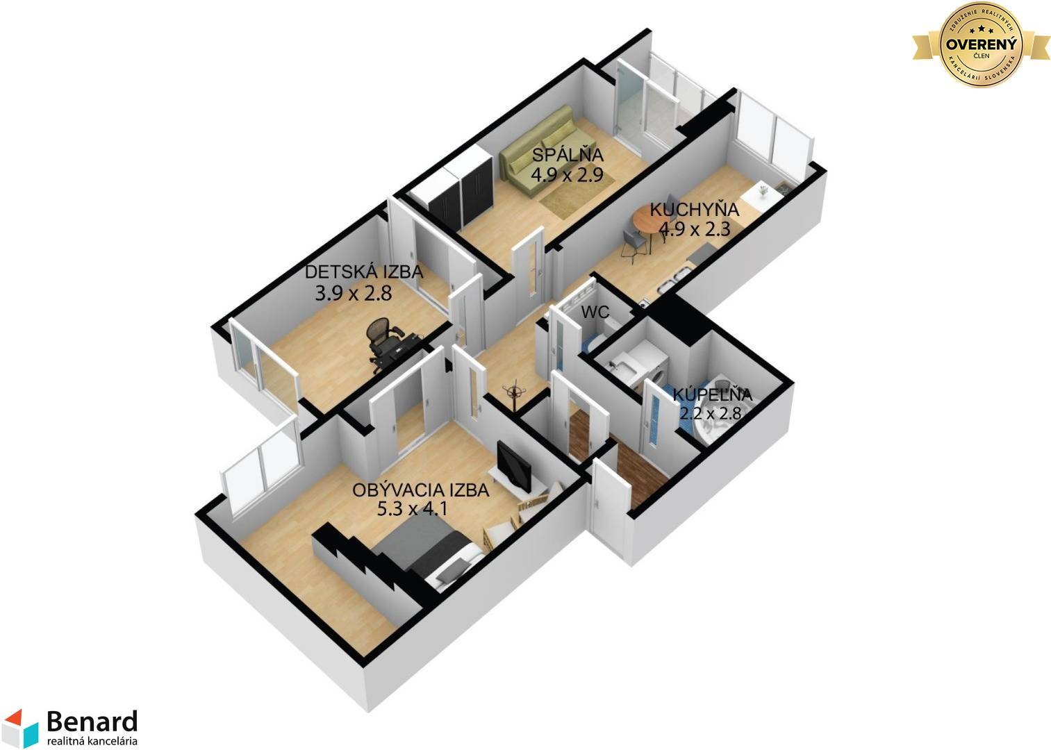 - nepriechodné izby, ktoré poskytujú dostatočné súkromie (rozmiestnenie izieb je vhodné aj pre prenájom, ak zvažujete kúpu na investičnú príležitosť),